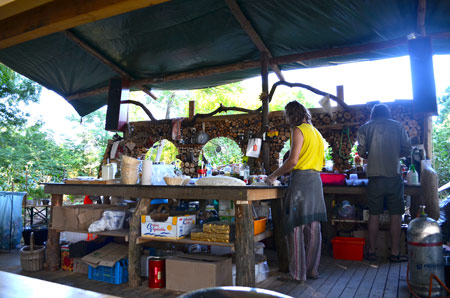 Here’s the SUN camp kitchen (made from logs). They do real good vegetarian food throughout the day