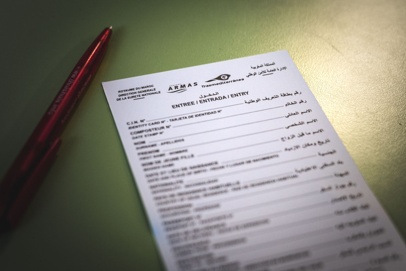 Once you’re on the ferry fill in the visa form on the ferry. For your Moroccan address use the address of a campsite. Don’t say you’ll be free-camping. Join the queue on the ferry (usually in the cafe) to hand your form in. You may be asked a couple of questions.