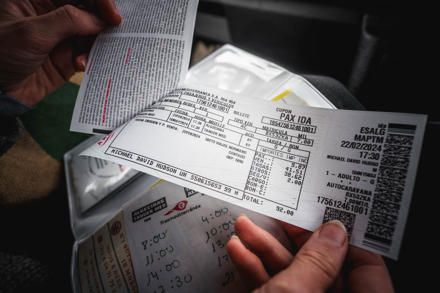 Choose a sailing time from one of the four or five crossings a day. Boarding the ferry on the Spanish side is fairly simple and quick. I recommend not choosing the last boarding if you need to get insurance on the other side, in Morocco – the office closes at 9 or 10pm.