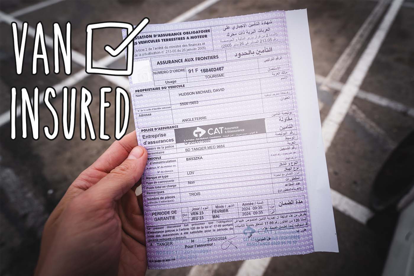 Chances are your van insurance isn’t covered for Morocco. You can get minimal 3rd-party cover for Morocco at the ‘Assurance & Réassurance’ office, about 100m after customs. Make sure they know your van is a camper. If it’s not registered as a camper, they’ll assume it’s for commercial purposes and insurance will cost a lot more. Three months insurance cost 200 Euro.