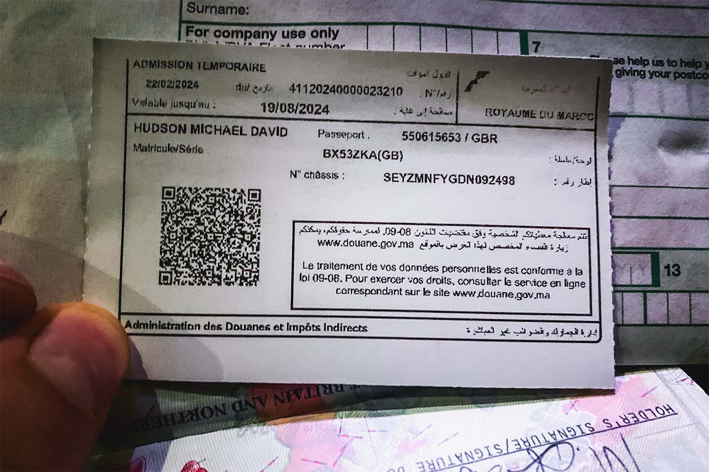 Only after the x-ray can you join the queue for customs. Expect to wait a long time here. The Moroccan authorities are in no rush whatsoever. At this point you hand you van’s registration document. That’s all they need. They’ll return it with a card with your details on. They may ask you questions about your visit and get a dog to sniff your van.