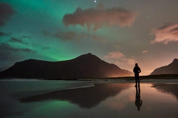 Lofoten by campervan: watching the Northern lights on Haukland Beach
